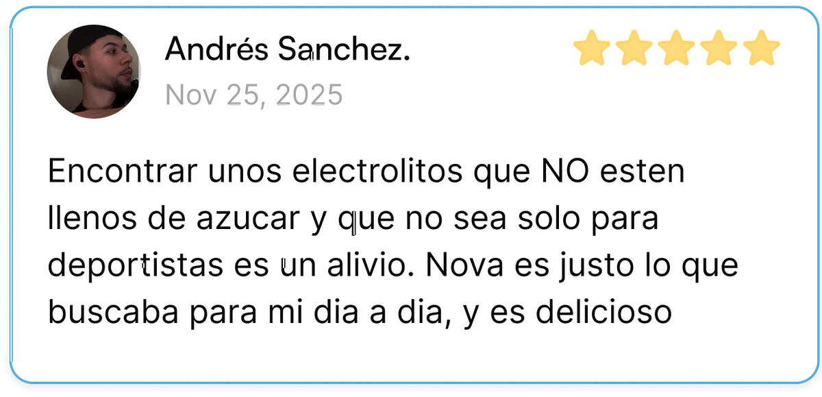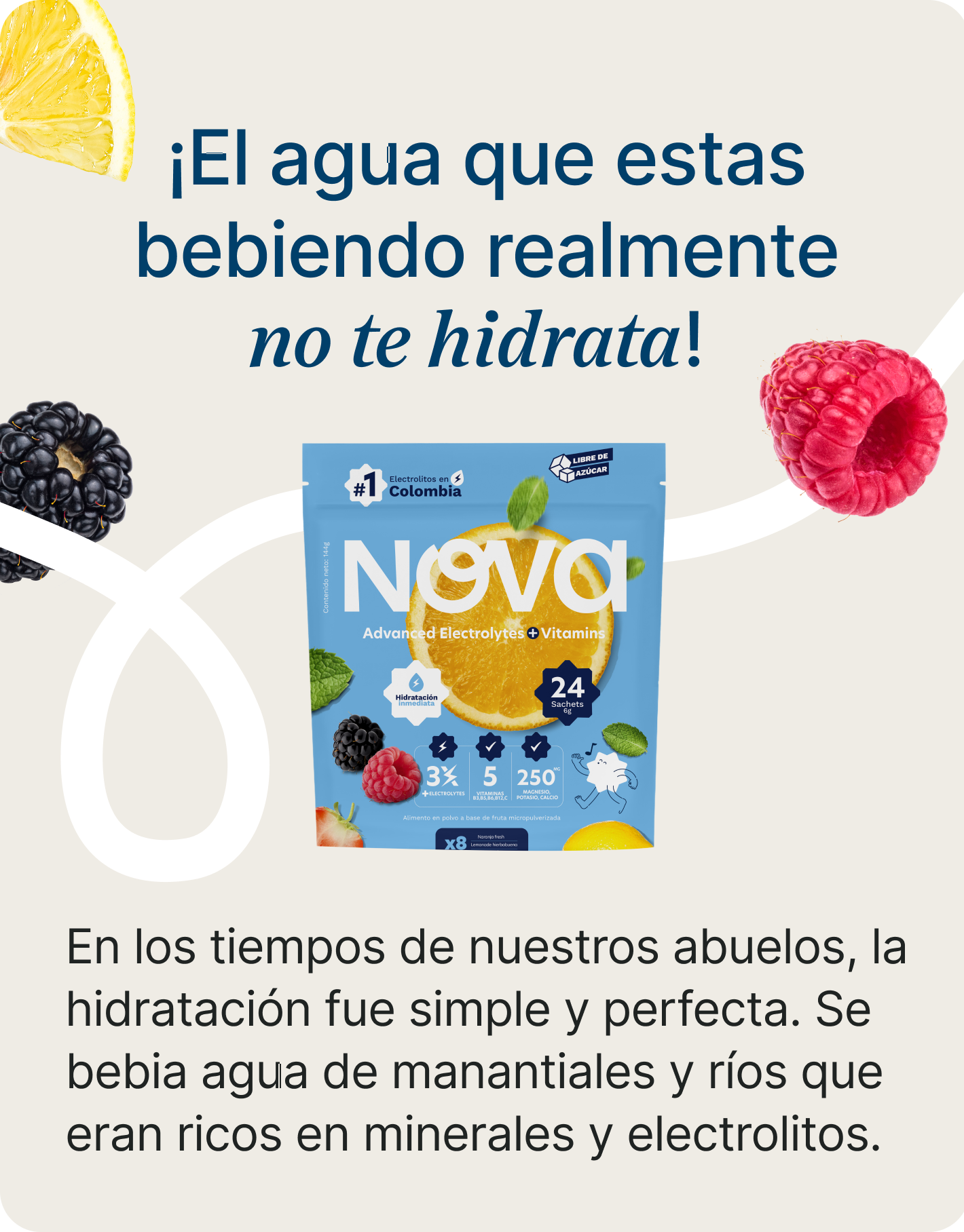 No, es mucho mejor. Mientras los sueros saben a sal y son para cuando estás "enfermo", Nova te da la misma potencia de hidratación, pero formulada para tu día a día, sin azúcar y con un sabor delicioso, sin ningún sabor a sal, solo a fruta real.