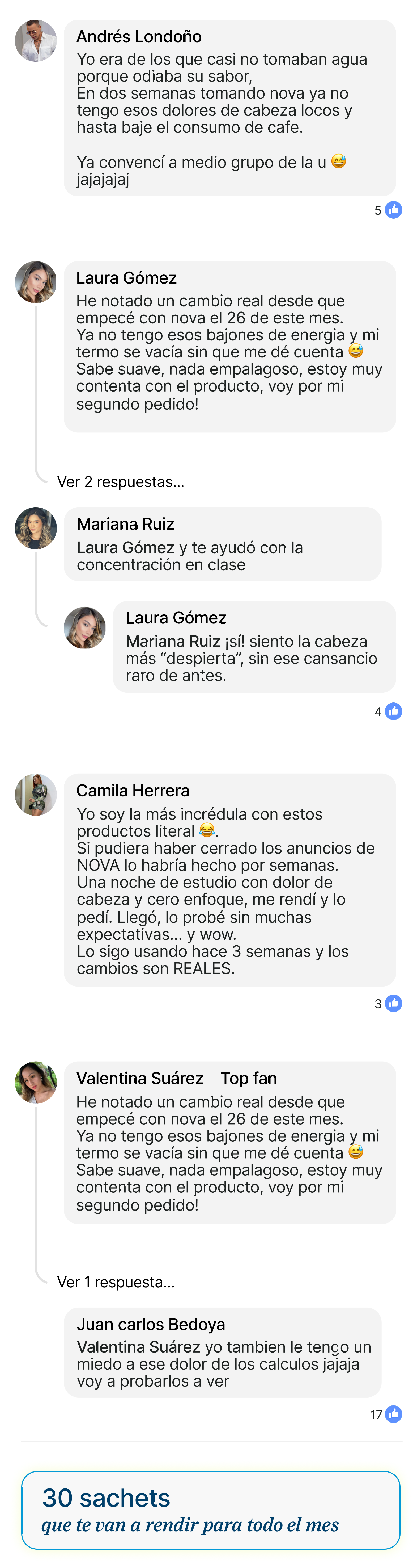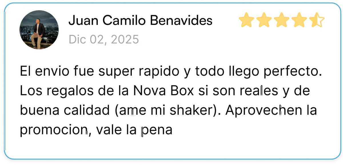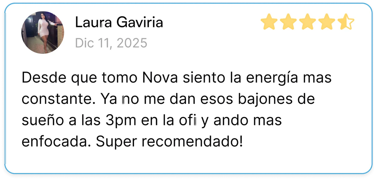 No. A diferencia de las bebidas energéticas, Nova te da energía real y sostenida a través de la hidratación y Vitaminas B y C, sin cafeína, sin azúcar y sin taquicardia.