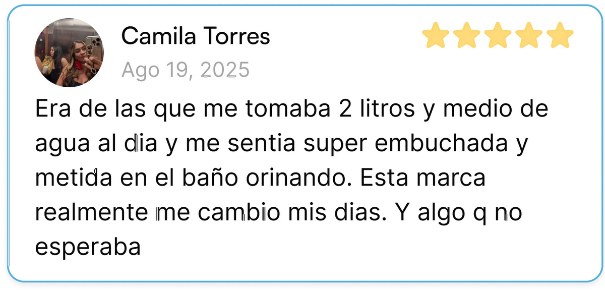 La constancia se convierte en ritual. Empiezas a disfrutar el hidratarte, no a obligarte. Tu piel se ve más viva y estirada, duermes mejor y te sorprende cómo algo tan simple puede hacerte sentir tan diferente.