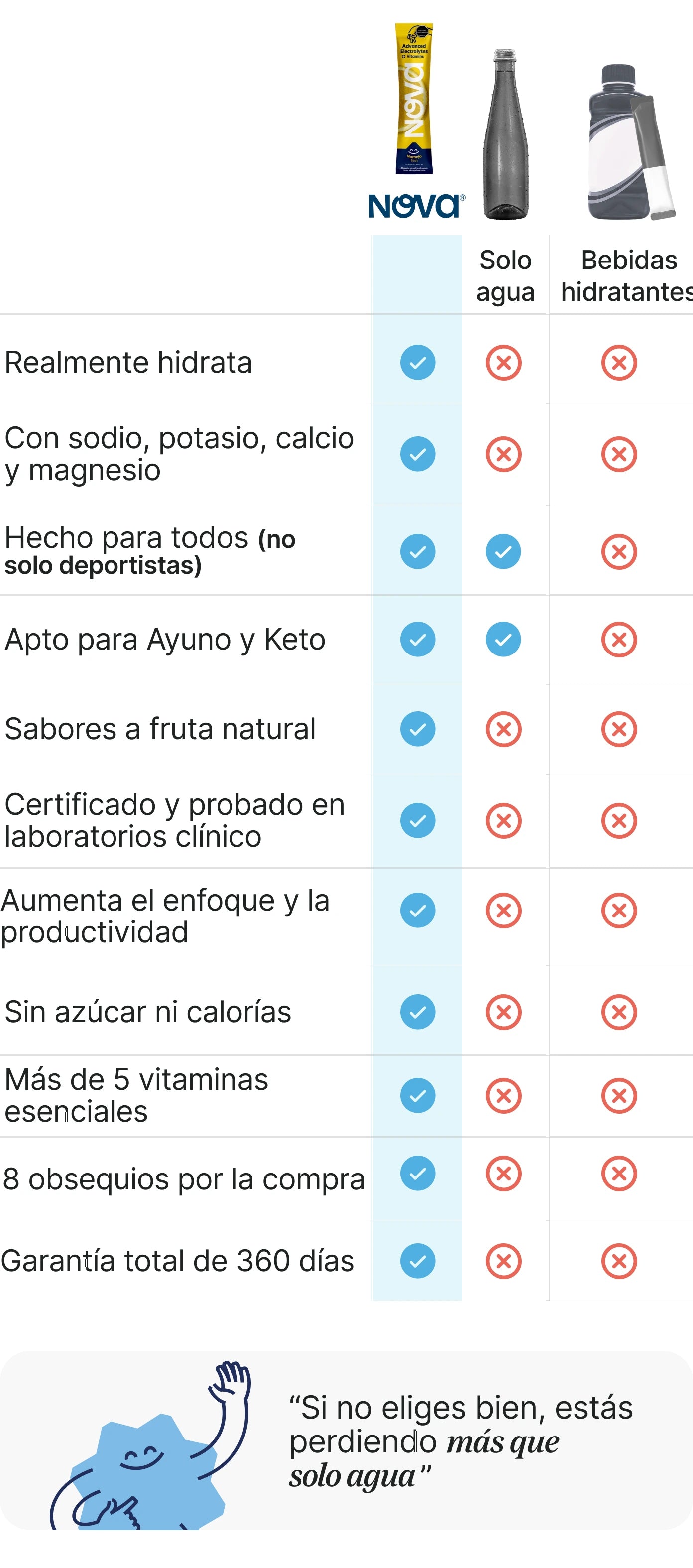 ¿Por qué NOVA supera al Agua sola y a las bebidas hidratantes del mercado?