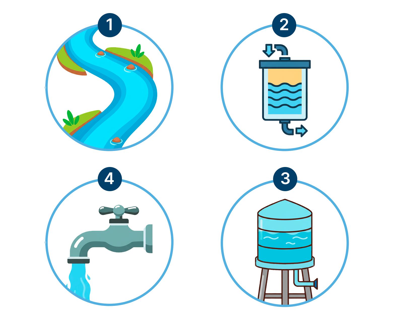 Las cuales se encargan de eliminar las impurezas del agua con químicos como el cloro y luego llega a nuestros hogares.